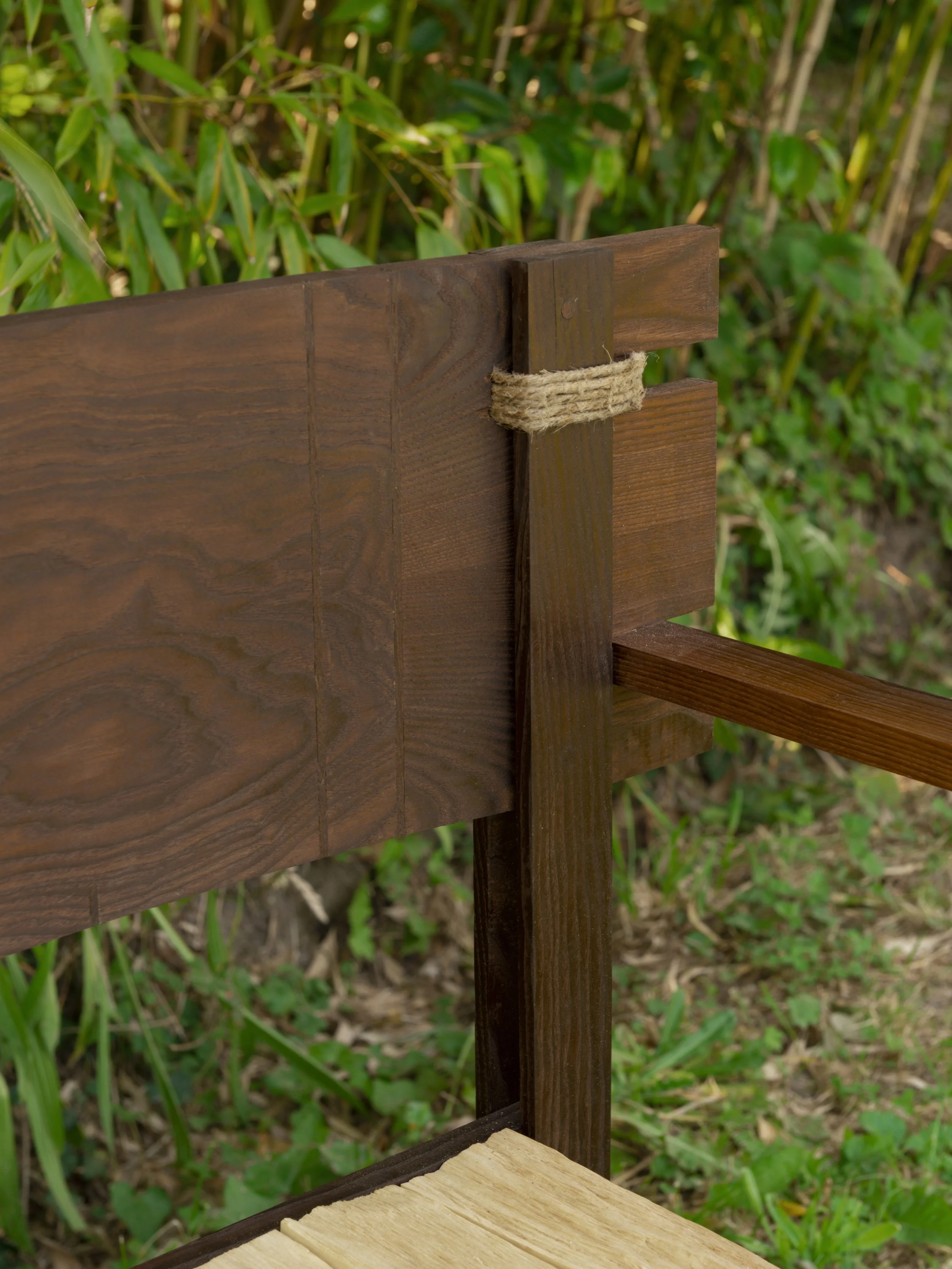 Materiaux: Assise en bardeaux de chataignier, frêne rétifié, Chanvre imbibé de goudron de pin.
